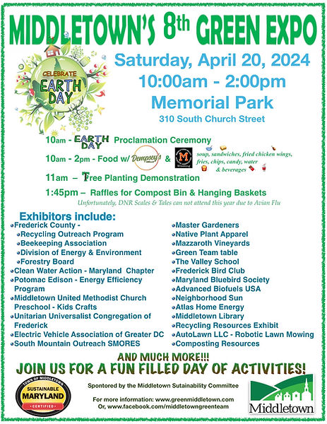 Kudos to the dozen or so participants from past Green Expo events who are participating in this year’s Virtual Green Expo! Our virtual Expo will begin on Friday, April 2nd and will continue throughout the month of April with videos featuring organizations or businesses such as the Frederick County Office of Sustainability, Sierra Club, and Fox Haven Farm, on the Middletown Sustainability Committee and Green Team Facebook page https://www.facebook.com/middletowngreenteam